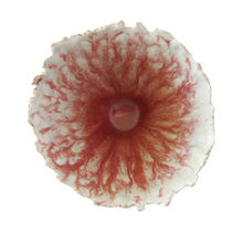 Grogged stoneware with gloss glaze (inner body) and semi-gloss glaze drips on raw (outer body)